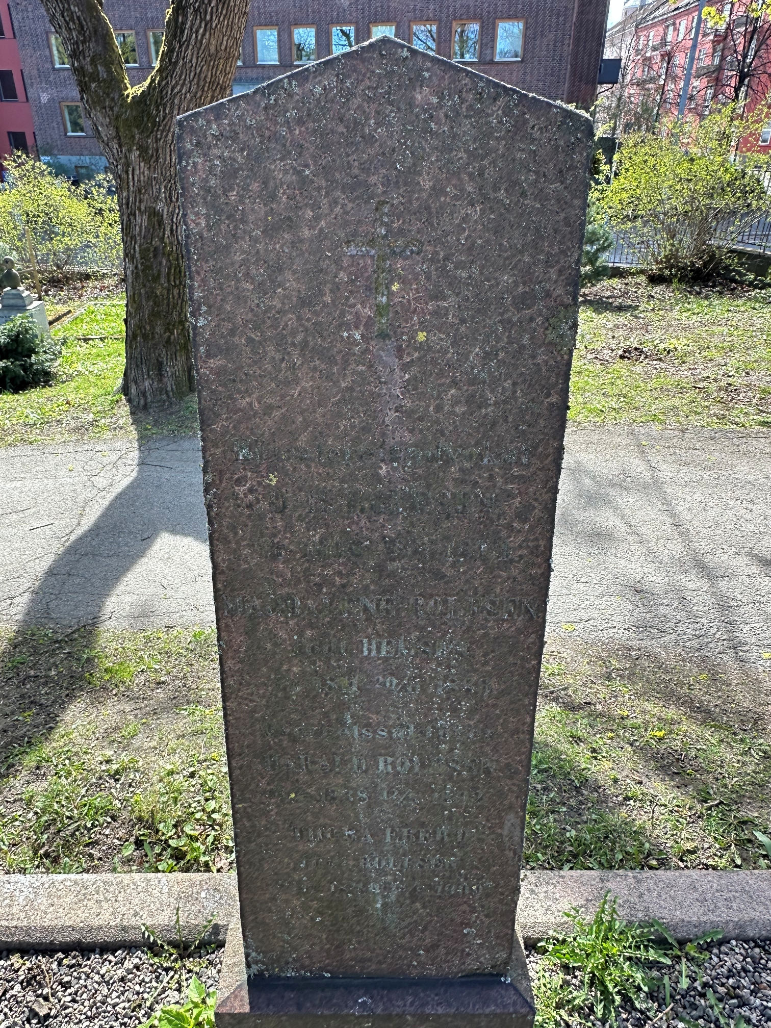 Gravminnet til Ole Hansen Rolfsen (1808–1874), Magdalena Rolfsen, f. Hemsen (1811–1883) og barna Hans Birger Rolfsen (1838–1892) og Thora Ebert, f. Rolfsen (1840–1909) samt Thora og Carl Emil Eberts datter Olga Ebert (1867–1958), gravnr. 01.003.01.021, Vår Frelsers gravlund, Oslo.