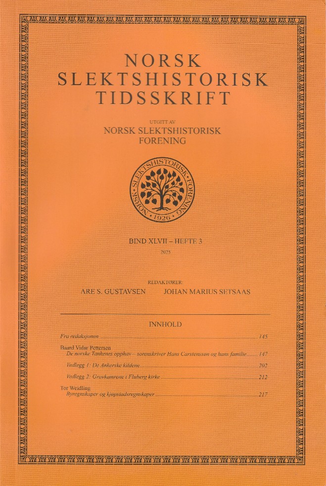 | 21. aug. 2024 kl. 18:18 | NST bind 47 hefte 2.jpg (fil) | 103 KB | Omslaget til Norsk Slektshistorisk Tidsskrift, bind XLVII (47), hefte 2, utgitt i 2024. Kategori: Omslagsbilder av Norsk Slektshistorisk Tidsskrift | 1 | |