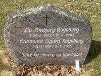 Gravminnet til Oddmund Sigurd og Liv Ambjørg Røgeberg, Stalsberghagen gravlund, Lillestrøm kommune. - 4c. Oddmund Sigurd Røgeberg (1919–2005), født i Vestfossen, Øvre Eiker.[82] Benyttet Røgeberg som slektsnavn i stedet for Røkeberg. Tekniker. Forlovet 1942, gift 1947 eller 1948 i Strømmen med Liv Ambjørg Ellingsen (1923–2003),[83],[84] født i Strømmen av foreldre stasjonsbetjent Einar Ellingsen og h. Astrid Margarethe Sletner.[85] Oddmund Sigurd og Liv Ambjørg Røgeberg er gravlagt på Stalsberghagen kirkegård, Lillestrøm.[86],[87]