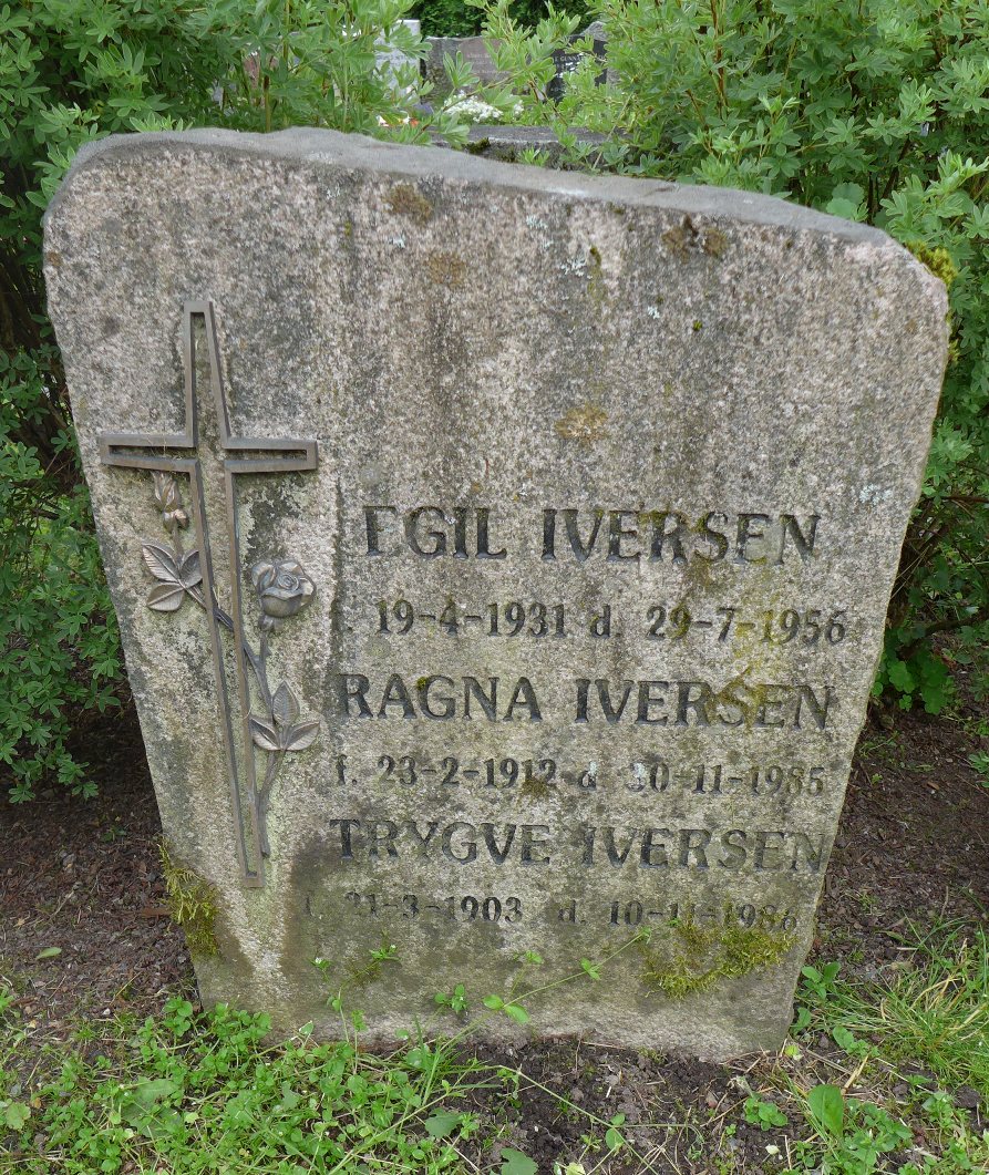 Gravminnet til Egil Olav Iversen (1931–1956), Ragna Kristine Iversen (1912–1985) og Trygve Iversen (1903–1986), Nordre gravlund, Oslo, gravnr. 22.040.04.028.