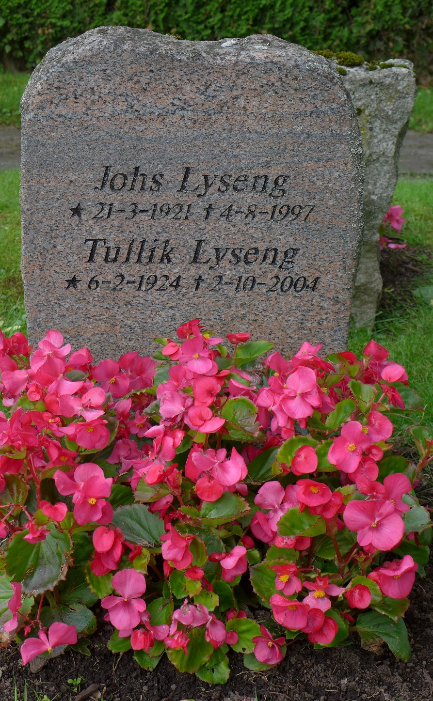 Gravminnet til Isak Themin (1886–1959), Anna Themin (1888–1975), Johannes Lyseng (1921–1997) og Eva Synøve «Tullik» Lyseng, f. Vogt (1924–2004), Nordre gravlund, Oslo, gravnr. 22.036.03.001. Kun Johannes og Evas navn er inkribert.