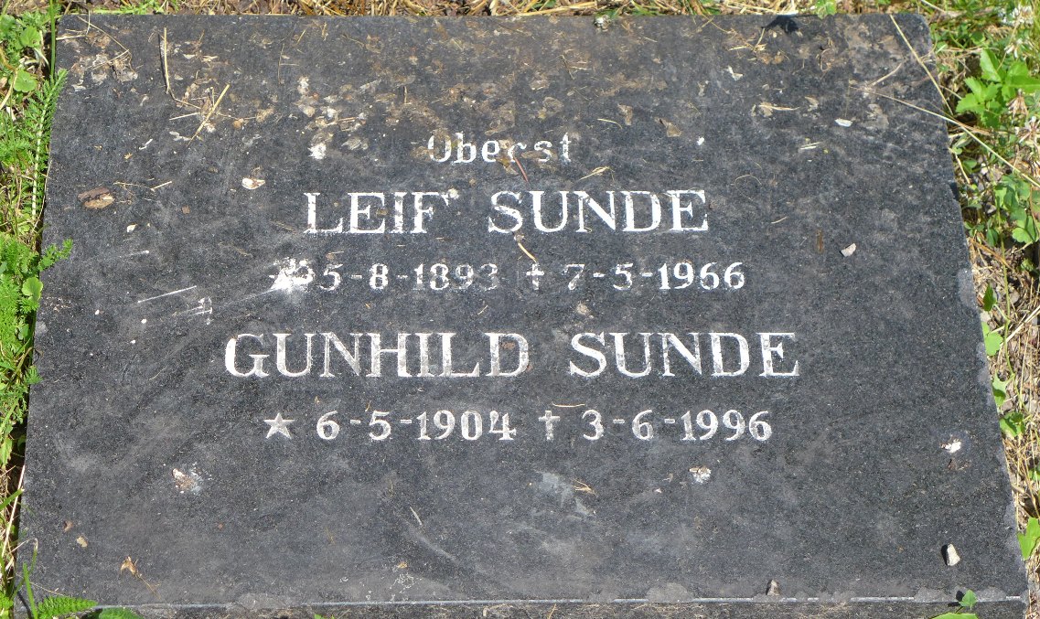 Gravminnet til oberst Leif Sunde (1893–1966) og Gunhild Kristine Sunde, f. Gulbranson (1904–1996), Vestre gravlund, Oslo, gravnr. 20.066.14.032.