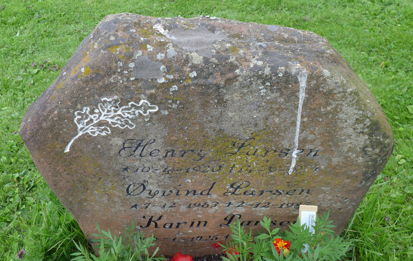Gravminnet til Karl Henry Larsen (1920–1974), kona Karin Alfhild Larsen, f. Lycke (1925–2010) og yngstesønnen Øyvind Larsen (1963–1983), Alfaset gravlund, Oslo, gravnr. 04.004.05.026.