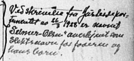 Anmerkning i dåpsoppføringen for Rolv Selmer-Olsen (1889–1961).