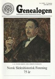| 29. mai 2023 kl. 18:06 | Genealogen200102.jpg (fil) | 92 KB | Omslaget til ''Genealogen'' nr. 2, 2001. Forsiden viser et portrett av Norsk Slektshistorisk Forenings første formann (1926–1928), Stian Herlofsen Finne Grønn (1869–1953), som var redaktør for [[Norsk Slektshistorisk Tidsskr… | 1 | |