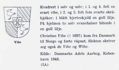 | 21. aug. 2017 kl. 14:03 | Wibe våpen beskrivelse.jpg (fil) | 36 KB | Utsnitt fra bok Norske slektsvåpen (1969) side 220 (Vibe) | 1 | |