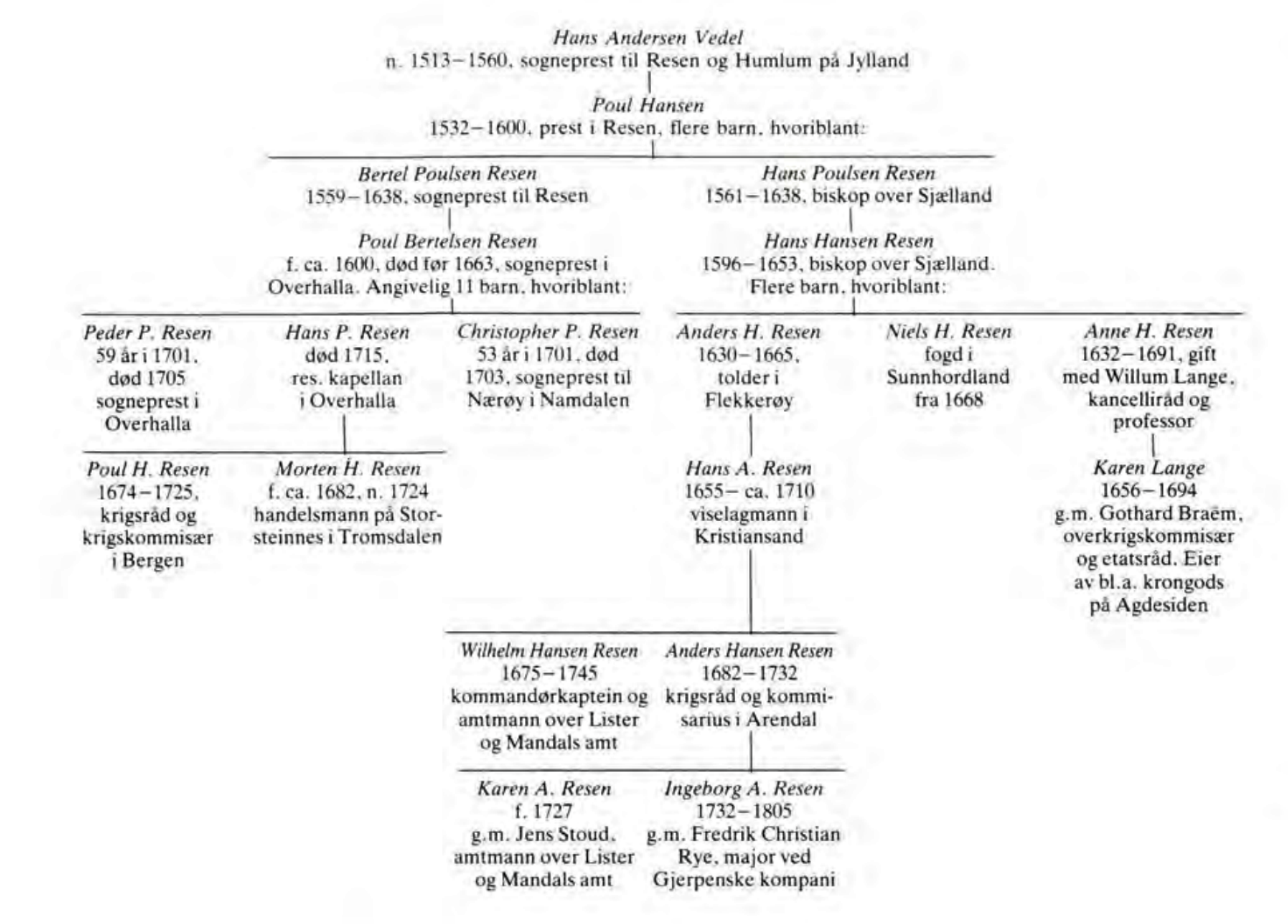 | 24. mar. 2021 kl. 09:11 | Resen oversiktstavle.png (fil) | 707 KB | Oversiktstavlen følger med bokanmeldelsen skrevet av Per Seland i NST b.31 s.340-41: «Mary Windfeldt Kaiser. Slægten Resen/Reesen fra Resen sogn, Skodborg herred, Ringkøbing amt». | 1 | |