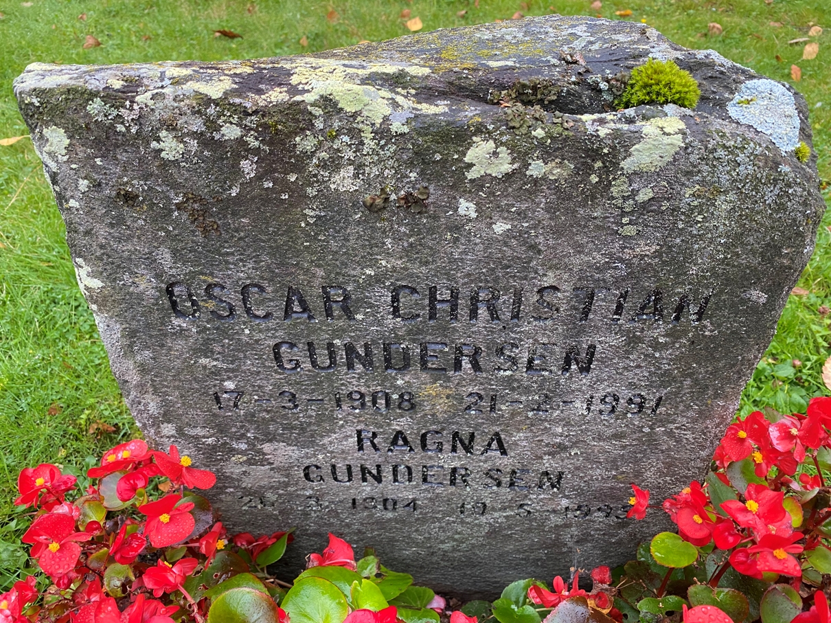 - (last ned) Oscar Christian Gundersen Ragna Gundersen gravminne Vestre gravlund Oslo 2021.jpg . . 1 210 × 907 . . 1,31 MB . . Dag T. Hoelseth . . 26. okt. 2021 kl. 13:22
