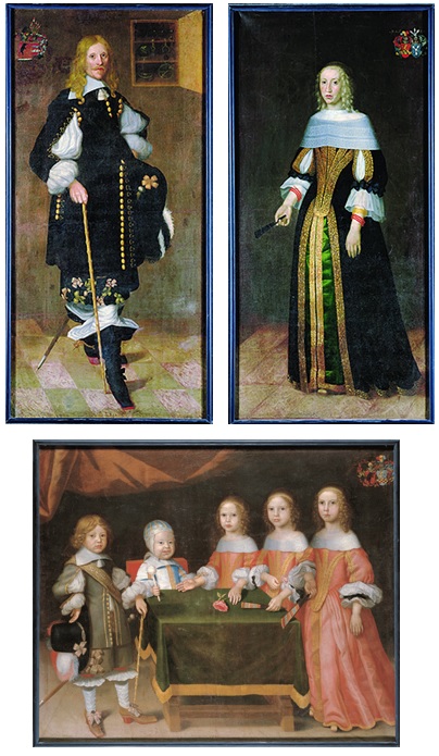 Malerier av Lauritz Galtung, Barbara Grabow og deres 5 eldste barn, malt ca. 1660. Foto: Knut Øystein Nerdrum. Rettigheter: Norsk Slektshistorisk Forening.