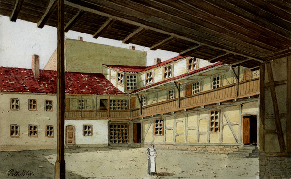 Bildet viser gårdsinteriør i Nordbygata 4 på Grønland, Kristiania.