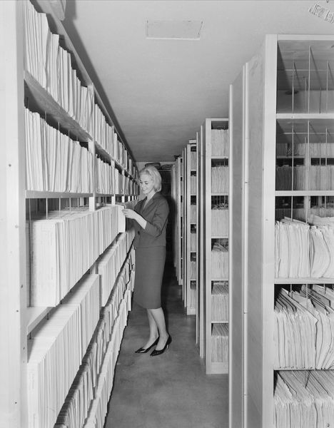 Ifølge Oslobilder.no en kontorkvinne avbildet i Norges Brannkasses arkiv i 1962. Kanskje ikke benevnt arkivar, men jobbet ihvertfall på et arkiv. Kan damen på bildet identifiseres?