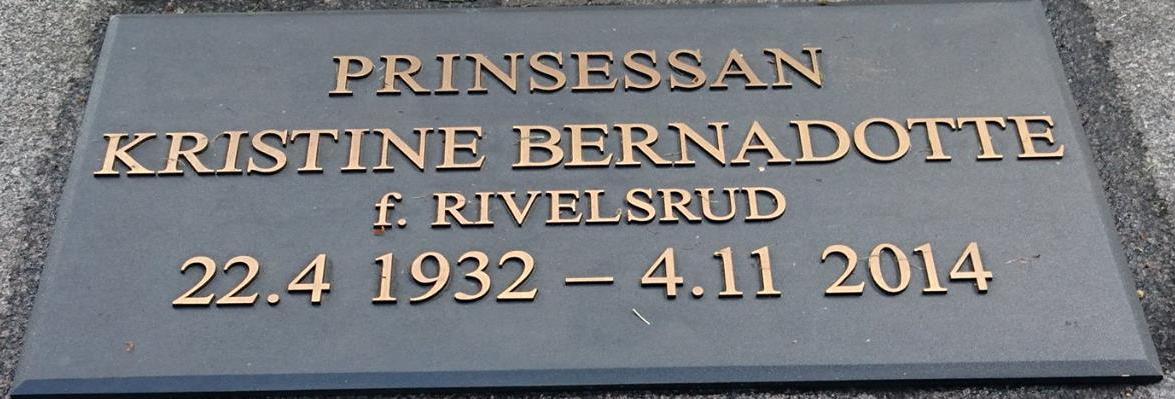 Gravplaten til prinsesse Kristine Bernadotte på felles grav for prins Carl av Sverige (1861–1951), prinsesse Ingeborg av Sverige, f. prinsesse av Danmark (1878–1958), deres eneste sønn prins Carl Bernadotte (1911–2003) og dennes tredje kone prinsesse Kristine Bernadotte, f. Rivelsrud (1932–2014) på Kungliga gravplatsen i Hagaparken, Solna, Sverige.