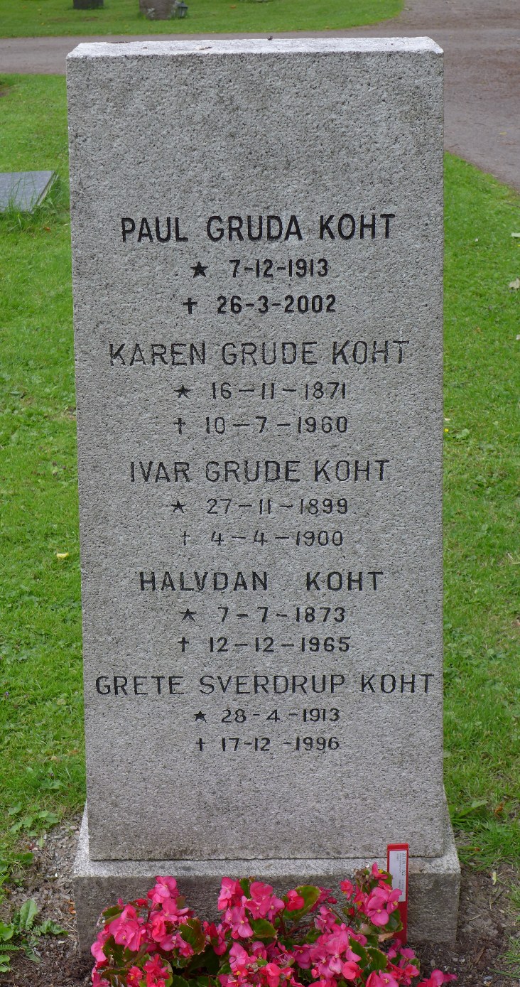 I familiegraven ligger: Ivar Grude Koht (1899–1900), Karen Koht (1887–1960), Halvdan Koht (1873–1965), Grete Koht (1913–1996), Paul Koht (1913–2002) og Erik Sverdrup Koht (1945–2016). Sistnevntes navn er inskribert på baksiden av gravminnet.