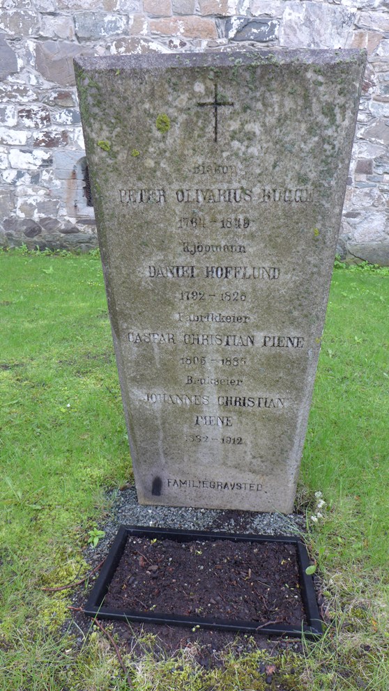 Bildet viser gravminnet til fabrikkeier Caspar Christian Piene (1805–1885), sønnen Johannes Christian Piene (1832–1912), svigerfaren, biskop Peter Olivarius Bugge (1764–1849) samt Caspars kones første ektemann, kjøpmann Daniel Hofflund (1792–1825), Domkirkegården i Trondheim, gravnr. 15-B-040.