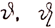 Varianter av symbolet for denarius, gammel myntenhet, hentet fra Krag-Rønne, Cato. Ordliste for ættegranskere, 1946, s. 70.