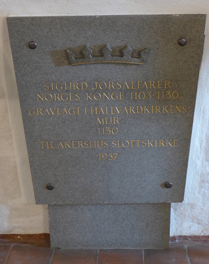 Gravminnet til det som opprinnelig var antatt å være levningene etter kong Sigurd Jorsalfare i Krypten under Akershus slottskirke.
