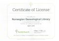 Norwegian Genealogical Library Certificate of License 2019.jpg 1 403 × 982; 59 KB