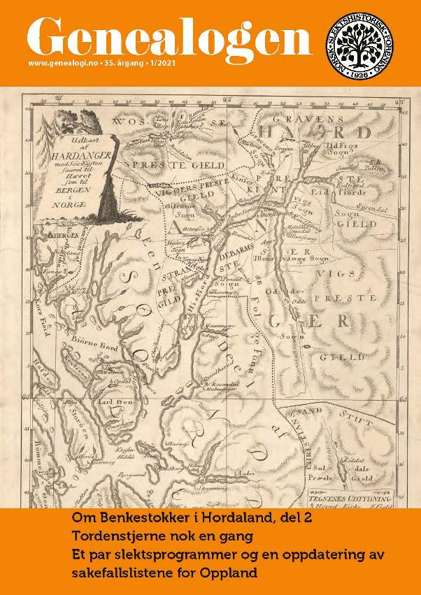 | nåværende | 25. aug. 2021 kl. 16:23 | 602 × 851 (106 KB) | Dag T. Hoelseth (diskusjon | bidrag) | Omslaget til ''Genealogen nr. 1, 2021. Kategori:Omslagsbilder av Genealogen |