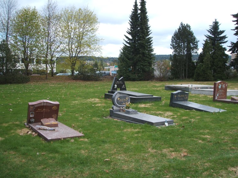 Bilde av romfolkets eget gravfelt (felt 1) på Alfaset gravlund i Oslo, mai 2011.