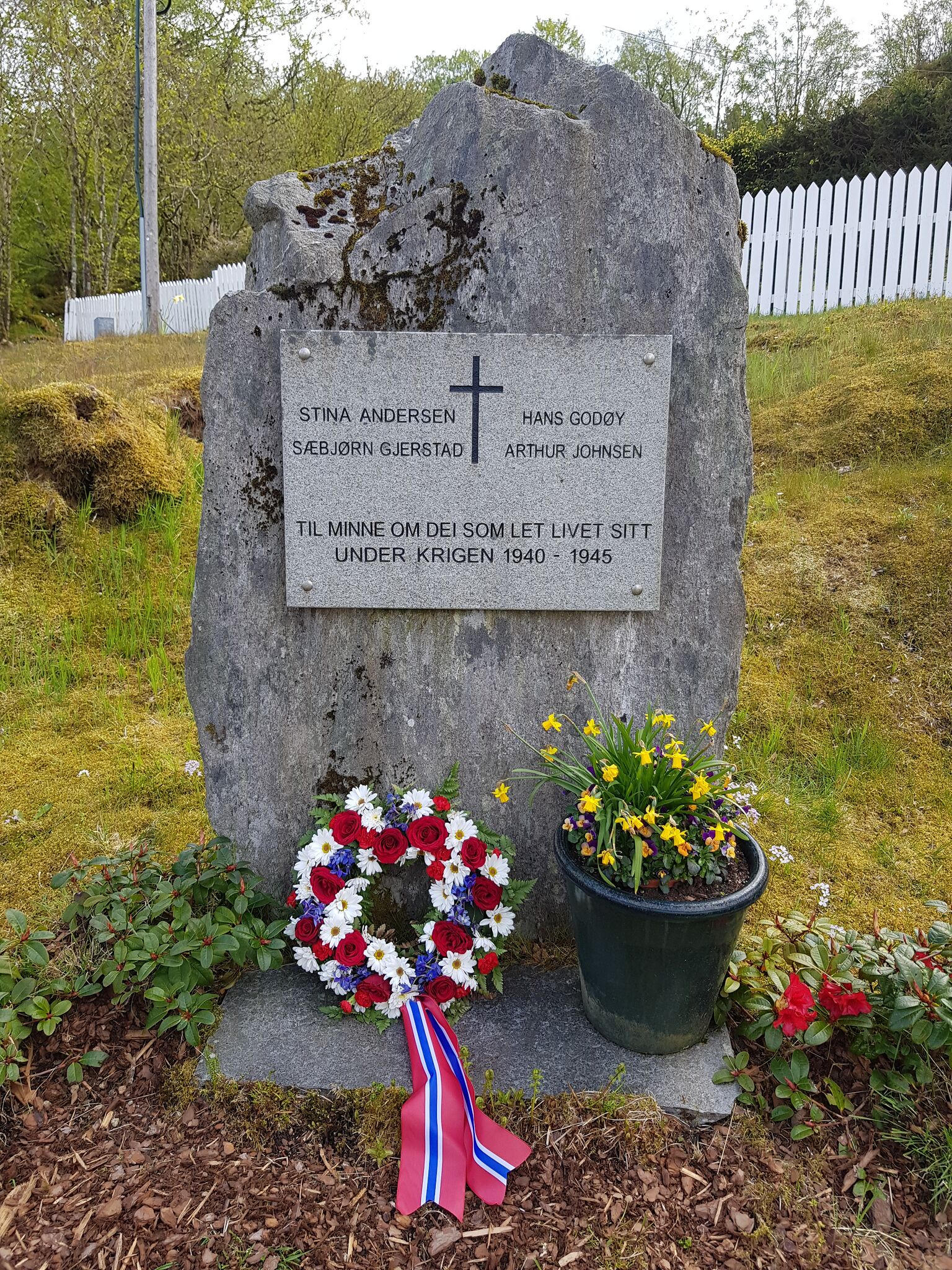 Minnesmerke over falne i striden 1940-45 utanfor Tysnes kyrkje. Minnesmerket heidrar 4 falne.