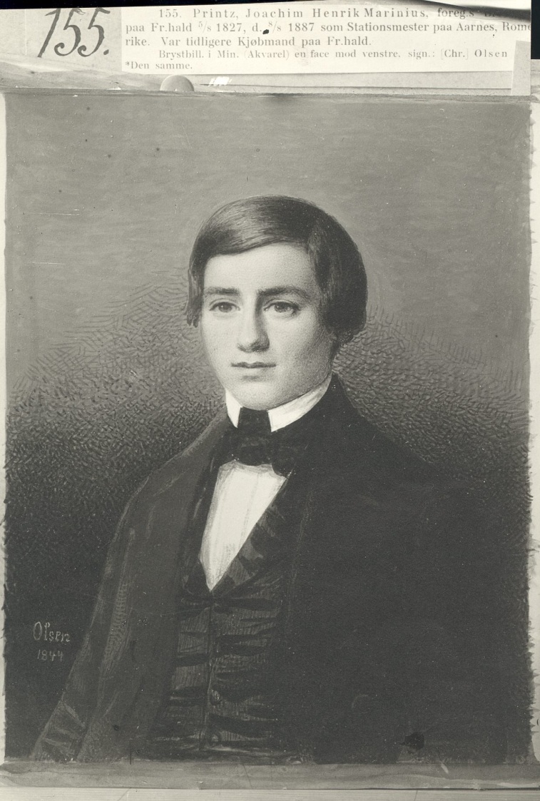 Portrett av Joachim Henrik Marinius Printz (1827–1887) i sine yngre dager. Bildet er besørget av Jan M. Keus.